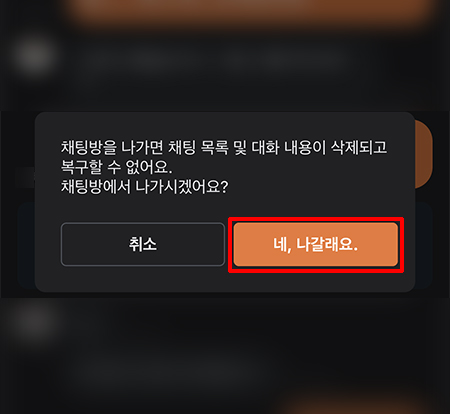 아직 완벽하게 거래가 완료된 상태가 아니라면 채팅방을 나갔을 때는 대화 내용을 복구할 수 없으니 바로 삭제는 하지마시고 조금 두는 것도 괜찮을 듯 합니다. 나중에 아예 이 거래는 완료됐다라고 생각되는 것만 지우면 되겠습니다.